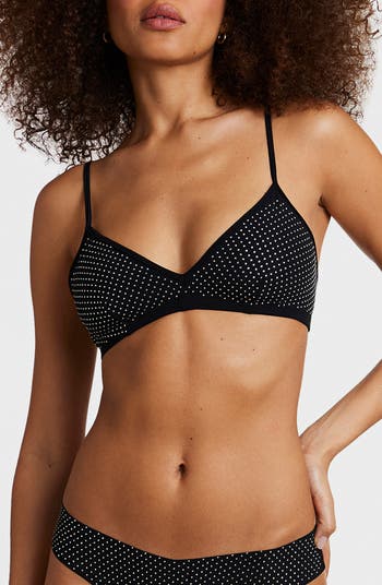 Shimmery crystals bring a glamourous vibe to this stretchy microfiber bralette.