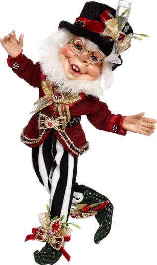A Mark Roberts “Party Time Elf” is a high-spirited, collector-style Christmas elf dressed to celebrate in glittery, luxe fabrics. With a playful expression and festive accessories, it looks ready to host Santa’s workshop after-party. The design is whimsical yet elegant, making it a standout statement piece for holiday décor.