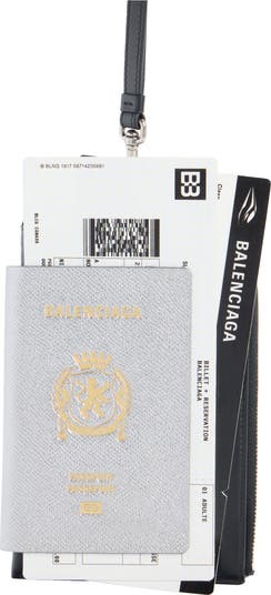 Sport the look of a glamorous jetsetter with this trompe l oeil calfskin-leather phone case that s cast in a silver hue and stamped with a goldfoil logo.