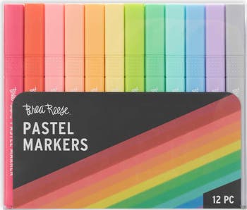 PASTEL MARKERS - 12PC - Add a touch of pastel perfection to your artwork with the Brea Reese Pastel Markers, a premium collection of 12 beautifully soft yet vibrant pastel colors. Whether you re a budding artist or a seasoned pro, this set is designed to inspire and enhance your creative projects with a unique blend of subtlety and vibrancy. The markers feature a thoughtfully crafted rectangular barrel, designed not only for visual appeal but also for ultimate comfort. The ergonomic shape helps to reduce hand fatigue, allowing you to work longer without discomfort, ensuring that your creative flow remains uninterrupted. Whether you re sketching, coloring, or detailing, these markers are crafted for a seamless experience. Equipped with a versatile wide chisel tip, these markers allow you to effortlessly create bold, sweeping strokes for larger areas, as well as fine, controlled lines for intricate detailing. This dynamic dual functionality makes them ideal for a variety of artistic techniques, from shading and blending to precise outlines. This 12-piece set includes an assortment of stunning pastel shades such as soft pink, lavender, mint green, and more, offering the perfect palette for adding delicate accents, blending colors, or creating soothing backgrounds. The smooth, high-quality ink ensures consistent coverage and rich pigmentation, so your work will retain its brightness and depth over time. INCLUDES: 12 Pastel Markers.