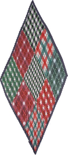 Patch Plaid Pleated Diamond is crafted from 100% recycled polyester, woven into a 16" x 40" diamond shape with delicate pleating. Finished with a machine flat hem, it blends sustainable craftsmanship with textured patterning for a modern, refined accessory.
