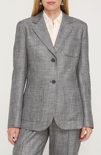 The NYC label s legacy of artisan tailoring shines through the powerfully pronounced shoulders and sharply nipped-in waist of this lustrous twill blazer.