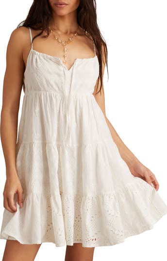 Tiers of embroidered panels create a patchwork design for this flowy sundress that s made of lightweight, breathable cotton.