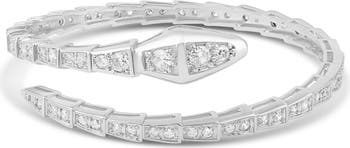 A flexible bypass bracelet slinks around your wrist in a snake-like silhouette glittering with pavé cubic zirconia.