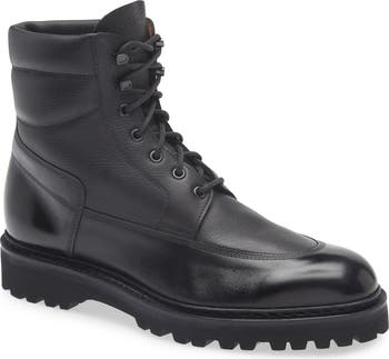 A mix of polished and pebbled leathers smartly details a sturdy boot set on a flexible sole with durable lugs for rugged traction.