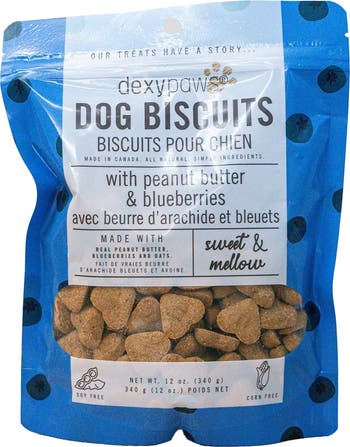 - SWEET MELLOW CRUNCHY DOG BISCUITS: Your furry friend is sure to love these peanut butter and blueberry treats. These tasty biscuits are perfect for rewarding good behavior or enhancing training sessions.