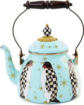 As much decor as it is utility, this heavy-gauge-steel tea kettle is hand-glazed for penguin lovers only and features an acacia-wood handle and a checked finial topping the lid.