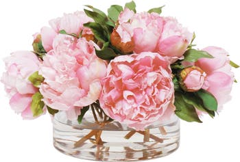 The variegated petals of these peonies resemble blooms gathered fresh from the garden. Displayed in an open cylinder vase, they make a romantic accent on a console or coffee table.