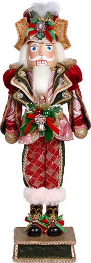 The Mark Roberts nutcracker is a limited-edition holiday collectible, designed by Mark Roberts and meticulously handcrafted to bring classic Christmas charm with an upscale twist. It features a hand-painted cast-resin face and a richly detailed, hand-sewn outfit that includes an elaborate coat with wide collars made of luxurious fabrics, ornate trim, and sparkling crystal accents. Perfect for mantels, entry tables, or display shelves, this festive figure adds a refined, whimsical focal point to seasonal décor and collector showcases.
