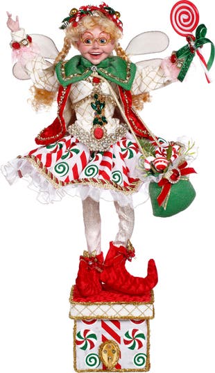 The Mark Roberts Peppermint Party Fairy Stocking Holder (20.5", item #51-37504) is a limited-edition collectible designed to hold a stocking while adding a playful, candy-themed statement to your mantel or tabletop. She wears a white dress and peppermint-candy tutu with sparkling bows and ribbons, and holds a festive lollipop, all finished with the brand’s intricate, heirloom-style detailing. Released in the 2023 Christmas line, it’s an authentic Mark Roberts piece meant for decorative display and long-term collecting.