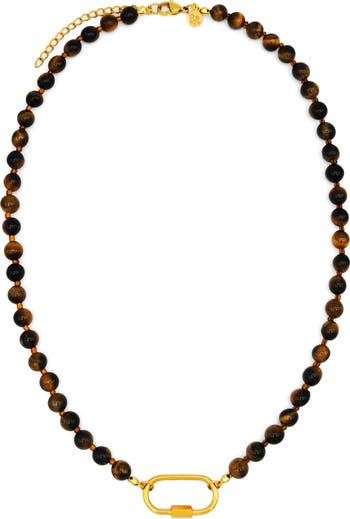 A carabiner centers this beaded necklace with utilitarian shine to house your favorite charms.