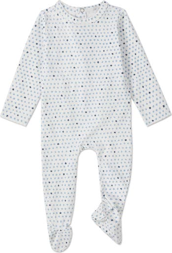 From its banded crewneck collar to its cozy elasticized feet, this star-studded footie is crafted for everyday comfort. The secret s the premium fabric: 95% cotton for ultimate soothing softness plus 5% spandex for flexible, shape-keeping fit. Finishing touch? A convenient back-snap closure.