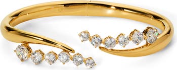 Bold and contemporary in it s sculptural style, this cuff bracelet prong set with cubic zirconia features sweeping lines and a polished finish.