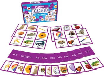 Picture Bingo is a picture matching game for teaching the names of common objects. Contains 4 boards and 24 cards. Ages 3+.