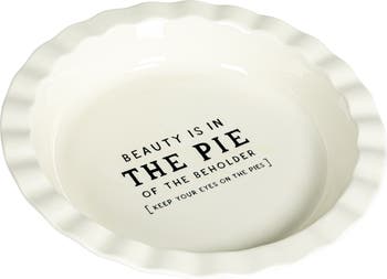 - A whimsical stoneware pie dish that declares "Beauty Is In.. THE PIE," inviting a smile with every slice served