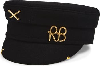 Add a glamorous flourish to your casual look with this baker boy cap glitzed up with piercing-inspired details and coiled accents.