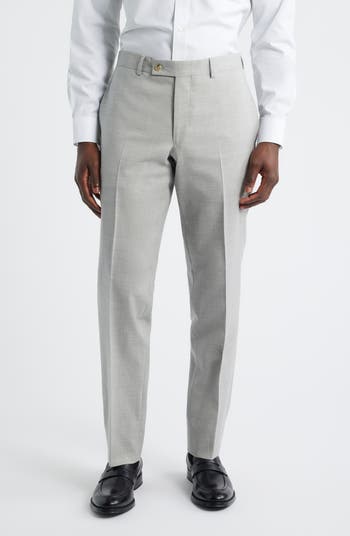 Flat-front construction and crisp creases down the legs bring traditional detailing to dress pants that are tailored from breathable cotton and wool enhanced by a touch of stretch for easy comfort.
