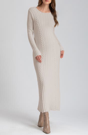 Long Sleeve Mixed Stitch Maternity Midi Sweater Dress