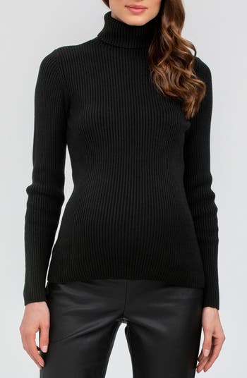 Comfort and style go hand in hand in this wool-kissed turtleneck sweater knit with cozy wide ribbing that hugs your growing bump at every stage of your pregnancy.