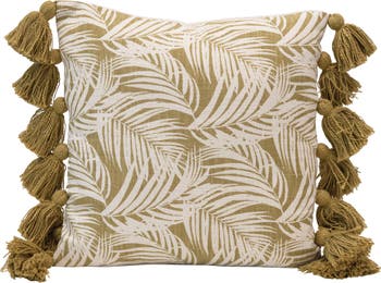 - This cotton pillow instantly upgrades any couch or chair, and catches the eye effortlessly with its palm frond pattern and tassels