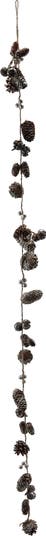 Enhance the seasonal decor with this intricately designed pinecone garland, which artfully incorporates seed pods and glitter accents within a sophisticated natural and gold color palette. Ideal for versatile applications such as draping over mantels, entwining along staircases, or framing doorways, this garland marries rustic charm with an elegant sparkle, making it a perfect addition to winter and holiday environments. Constructed from a curated selection of materials, including pinecones, Schima Superba fruit shells, metal, jute, and foam, it ensures both resilience and aesthetic appeal. With dimensions of 72 inches in length and 2.25 inches in height, this piece presents a refined touch to the holiday décor.