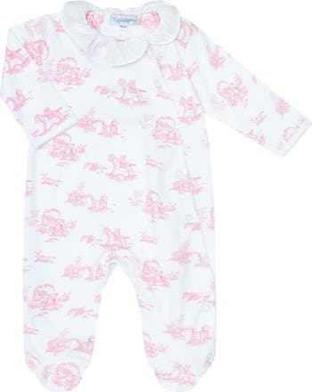 Made from the highest quality Peruvian Pima Cotton, this footie is gentle on your baby s delicate skin, providing protection against dust and rashes while crawling and walking. The crossover design allows for effortless dressing, while the charming toile print adds an elegant touch to your little one s wardrobe. Soft to the touch and easy to care for, this footie is a must-have addition to your baby s collection.