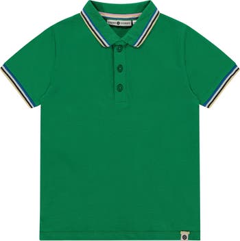 This short sleeve polo shirt features a contrasting striped detail at the sleeves and collar.