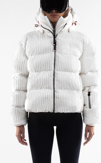 This signature Malibu Ski Club streetwear inspired hooded puffer style jacket is insulated with warm Ecodown Fibres Genius® recycled synthetic down developed by Italian thermal innovation specialists, Thermore. With a 3D corduroy appearance and natural down feel, the Piste Jacket delivers comfort, warmth and cutting-edge design in equal measure. The Piste Jacket is unmistakably Malibu Ski Club with an après ski-meets-street design, modern fit and iconic branding.