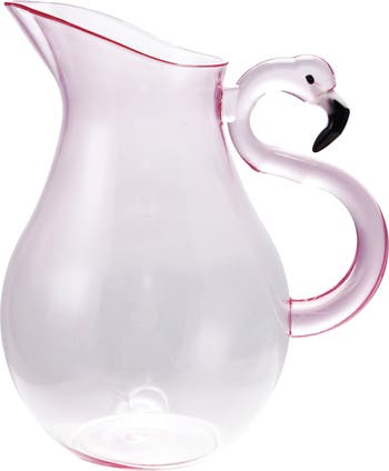 - An eye-catching acrylic pitcher featuring a whimsical flamingo handle in a vibrant pink hue