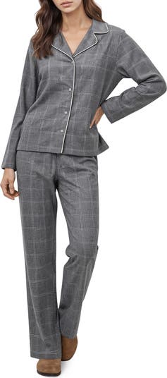 Cozy up in these cotton-enriched pajamas patterned in preppy plaid and framed with contrast piping.