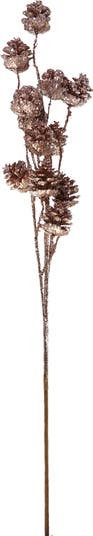 - A stylish plastic pinecone stem with an ice finish and a copper-toned accent for seasonal charmPerfect for winter and Christmas styles, adding a frosted, elegant touch to festive décorUse it to enhance wreaths, centerpieces, holiday displays, or floral arrangements with warm sophisticationMade of plastic, wire, and paper29" L