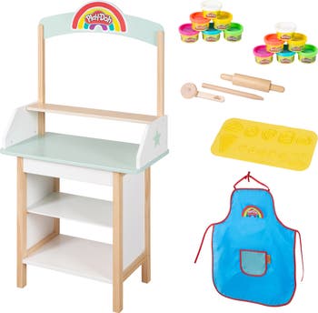 PLAY-DOH: ICE CREAM STAND - The Play-Doh Ice Cream Stand is a delightful set that transforms playtime into a sweet and creative experience for young artists. This vibrant collection includes a water-resistant craft apron, ensuring that little ones can get messy while having fun without worrying about their clothes. Equipped with essential tools like a rolling pin, pizza cutter, and modelling tool, children can craft their own unique ice cream treats and explore various culinary creations. The set also features a 3D creative silicone play mat measuring 14.5x30 cm | 5.71 x 11.81 inches, providing an engaging surface for imaginative play. With twelve 2 oz containers of Play-Doh modelling clay in a spectrum of colors—two each of red, yellow, blue, green, white, and berry—children can mix, shape, and design their dream ice cream creations. This set FEATURES FSC-certified wooden tools and BPA Free Silicone. The interactive playset not only fosters creativity and fine motor skills but also encourages social play as kids share their deliciously imaginative desserts. Perfect for solo play or group activities, the Play-Doh Ice Cream Stand is a must-have for any child s creative toolkit. Set INCLUDES: 1 Apron, 3 Wooden Tools, 1 Silicone Mat, 1 ice cream stand, and (12) 1oz containers of Play-Doh.