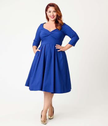 This darling swing dress features a chic front twist detail on the bust that beautifully accentuates your figure, while the three-quarter length sleeves offer just the right amount of sophistication. The luxurious fabric drapes effortlessly, making you feel as fabulous as you look.