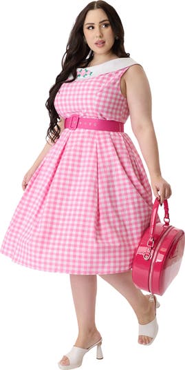 This delightful life-size reproduction of the Dancing Doll dress, originally released in 1965, brings together retro flair and modern fun. The sweet collar adorned with a floral applique adds just the right touch of femininity. Complete with back zipper and side pockets!