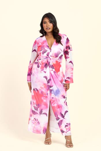 Embrace elegance with this vibrant plus size mesh midi dress featuring a flattering twist front and floral pattern, perfect for making a statement at any occasion.