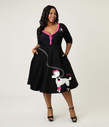 This 1950s inspired plus size woven swing skirt will transport you back to the sock hop! Outfitted with a banded waist that cinches in the back with a hidden zipper and dual snap buttons for a secure fit. Complete with functional side pockets!