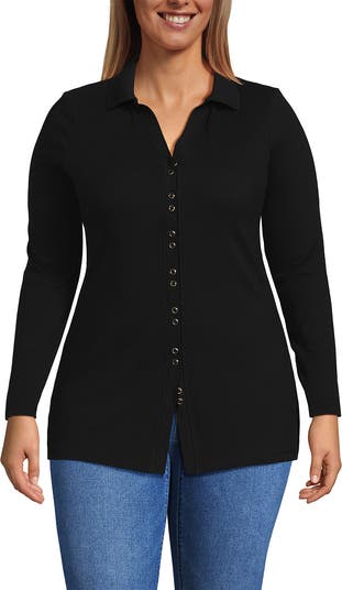 The tunic length you love in a flattering knit that skims the body without clinging. This style provides a smart option worn on its own and is just as nice under a jacket or blazer. Or try to wear unbuttoning the bottom two buttons to pair perfectly with wide-leg bottoms. The ribbed fabric gives you style and comfort no matter how you wear it.