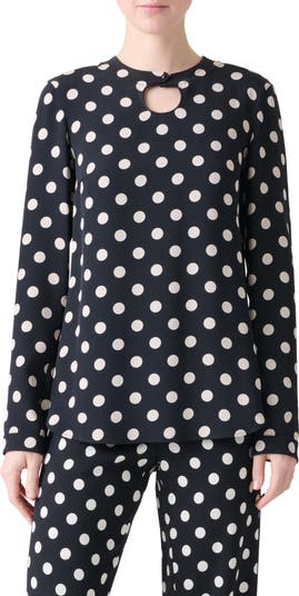 Enliven your look with this polka-dot patterned top cut from stretch-kissed crepe and winked with a circular front keyhole.