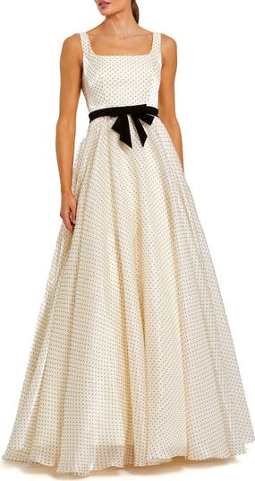 Polka Dot Organza Square Neck Ballgown With Bow