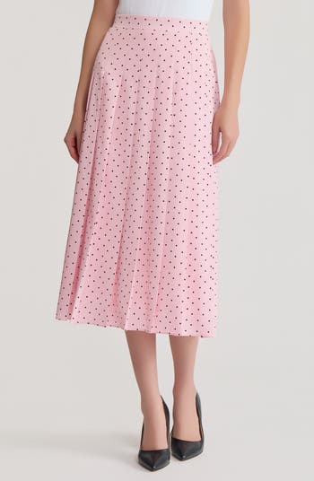 Sweet pleats and dainty dots define a petal pink skirt designed with an elastic back waist for discreet comfort.