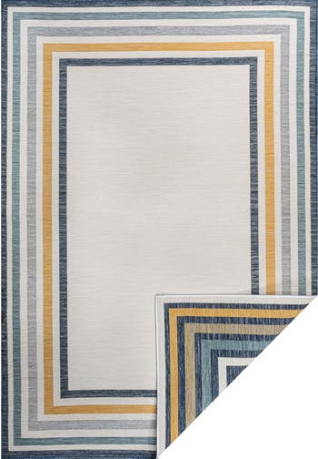 Pollux Classic Coastal Mitred Stripe Reversible Machine-Washable Indoor/Outdoor Area Rug