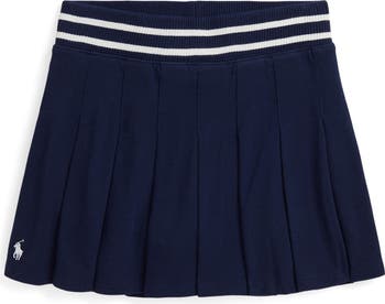 Sporty, cute and versatile, this pull-on skort is designed to appeal to your active child with crisp knife pleats and stretch-jersey shorts at the interior.
