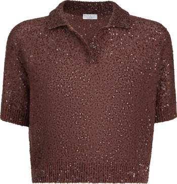 Special knitting enhances the linen, cashmere and silk yarn incorporating densely interspersed pailettes.