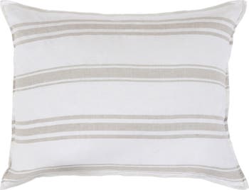 Fine stripes lend fresh, subtle style to a modern accent pillow cut from airy linen.