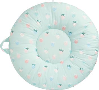 Your little one will love lounging on this patented cushion with a distinctive donut design that helps to keep baby supported and comfy at every stage. With raised edges and a soft padded center, this cushion supports baby s head and neck while providing a cuddly space for supervised playtime while promoting muscle development. Dual handles offer easy portability, and durable, machine-washable construction means it can be used indoors or outdoors and for excursions.