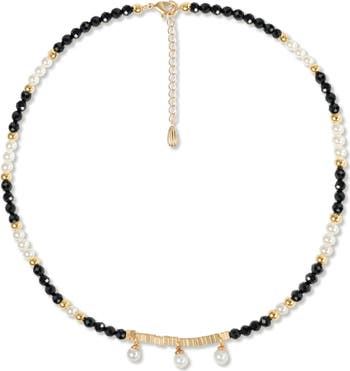 Fluid beaded necklace inspired by ocean mysteries with dimensional gemstone beads for a timeless statement look.