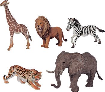 - 5 ICONIC SAFARI ANIMALS: Includes a lion, tiger, elephant, giraffe, and zebra, each crafted to inspire wild and imaginative adventures. These safari animals bring the spirit of the wild right into your playroom.