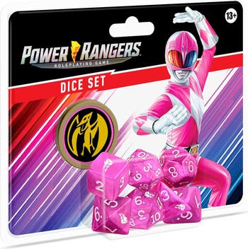 This 8-piece dice set is what every Ranger needs to be a hero in the Power Rangers Roleplaying Game! Specially designed for the Power Rangers Roleplaying Game, these morphinomenal dice will help you conquer your foes and protect Angel Grove and beyond! Each set includes: 2 d20 , 1 d12, 1 d10, 1 d8, 1 d6 , 1 d4 , 1 d2 “Power Coin” For use with the Power Rangers Roleplaying Game. Features: 8-piece custom dice set for us with the Power Rangers Roleplaying Game Includes a custom d2 “Power Coin” with a zord on one side and Ranger Helmet on the other. Conquer your foes and protect Angel Grove and beyond with custom dice! Collect all 6 sets, one for each ranger color!