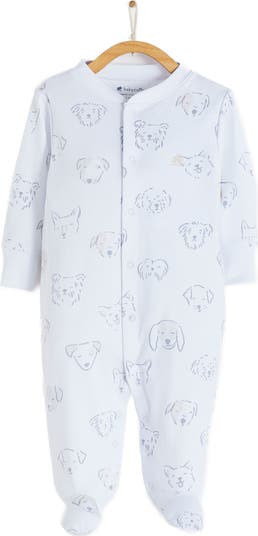 This Paws footed pajama features a full snap closure for easy dressing. Delicate picot edging adds a charming touch, while the all-over dogs print creates an adorable look. Designed for both convenience and style, this pajama ensures your baby stays cozy and comfortable.