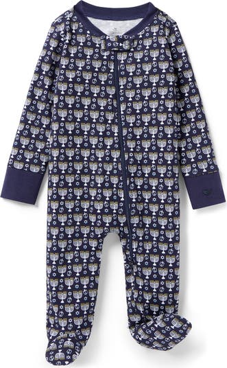 Peruvian pima cotton means breathable and soft comfort in these celebratory pajamas that have a snap-tab chin guard and a convenient front zipper for easy changes.